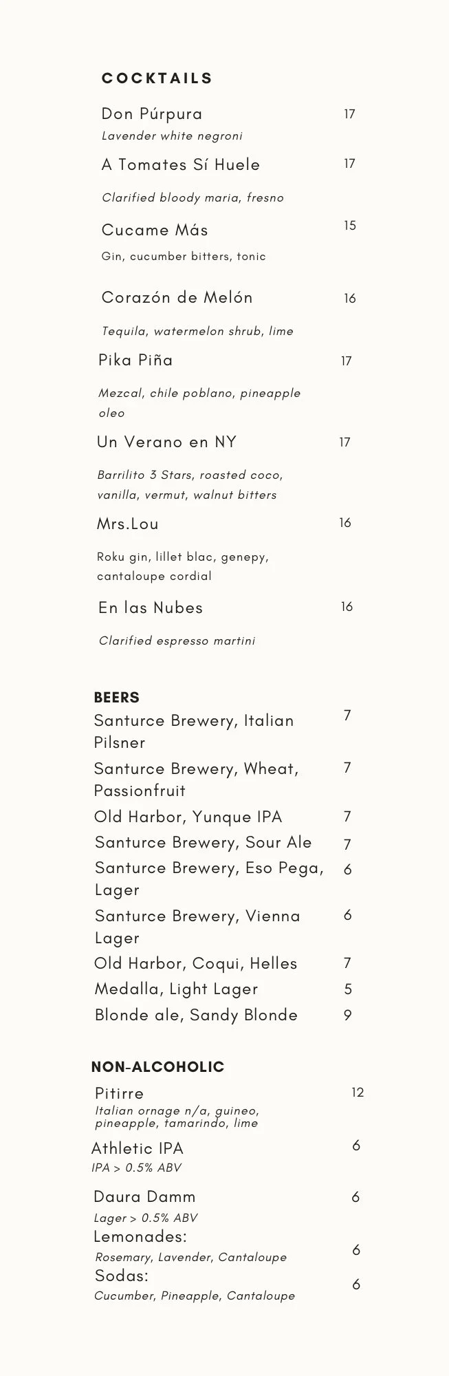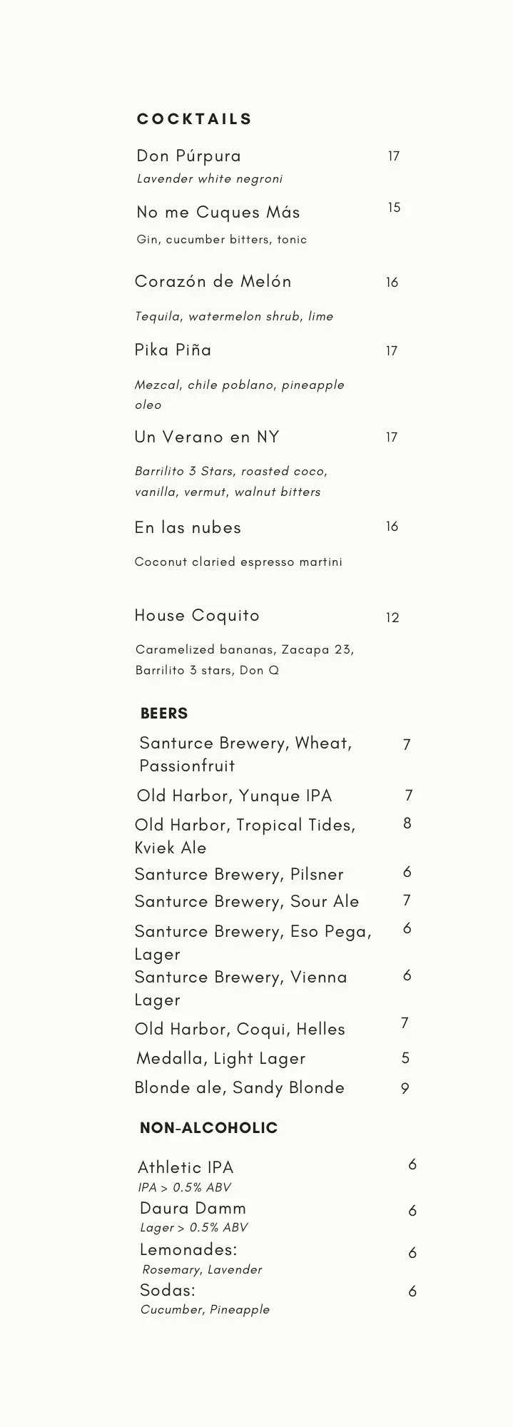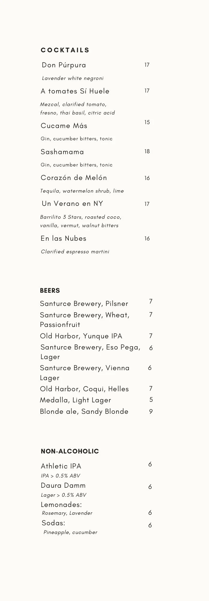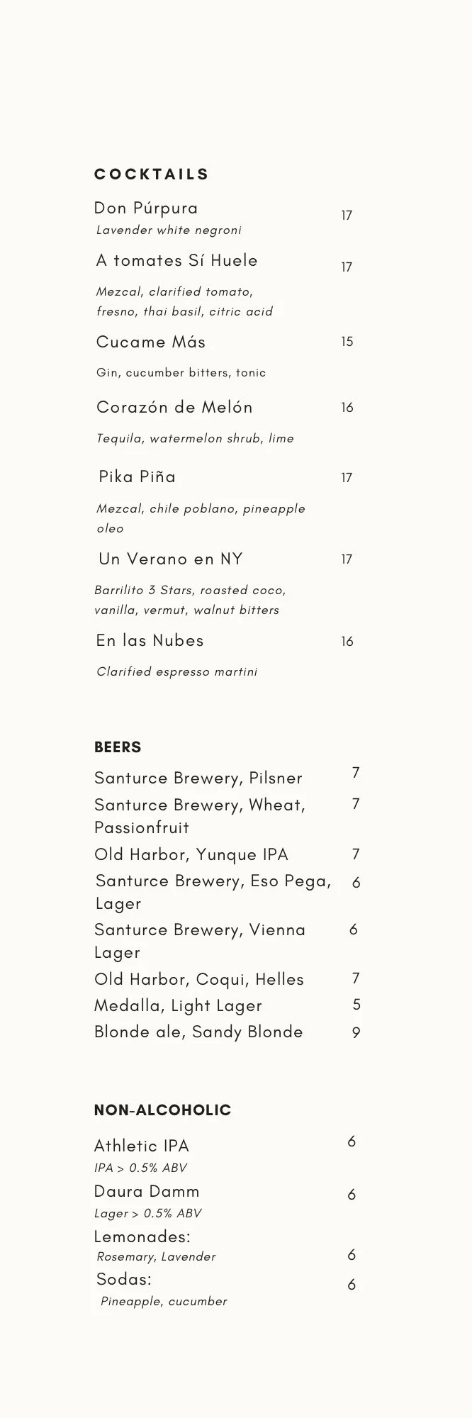 In 2017 they moved to San Juan, Chef Guzmán's hometown, to start building their first restaurant: Vianda. The Spanish language adopted the word "vianda" from the latin word “vivanda,” which means a place of living. Vianda serves a small, constantly evolving, farm-to-table menu anchored by local ingredients and products. This enables us to create, fresh, delicious food focusing on the best that Puerto Rico has to offer: its agriculture and its warm hospitality.