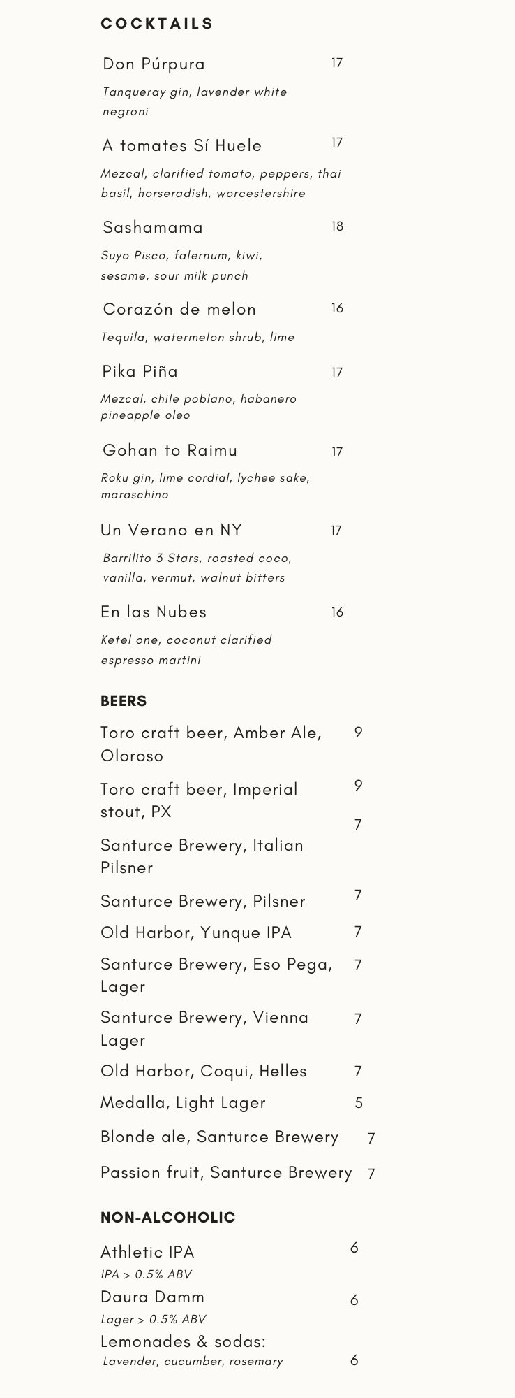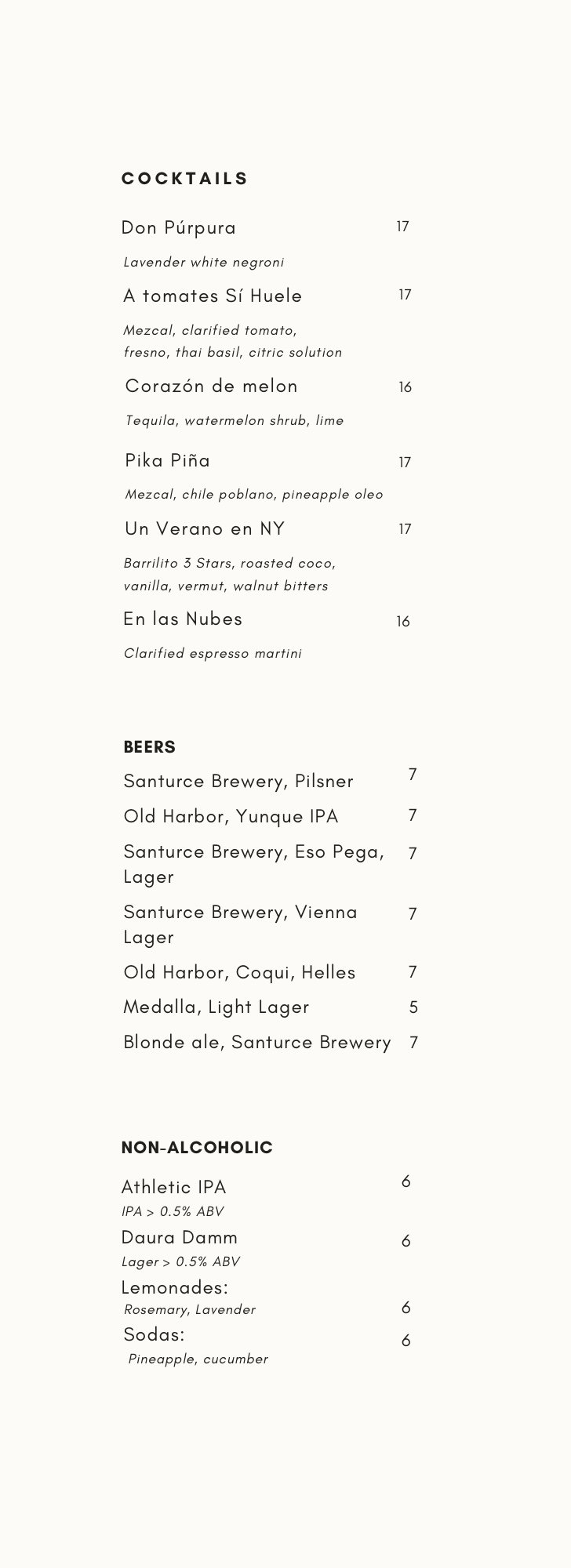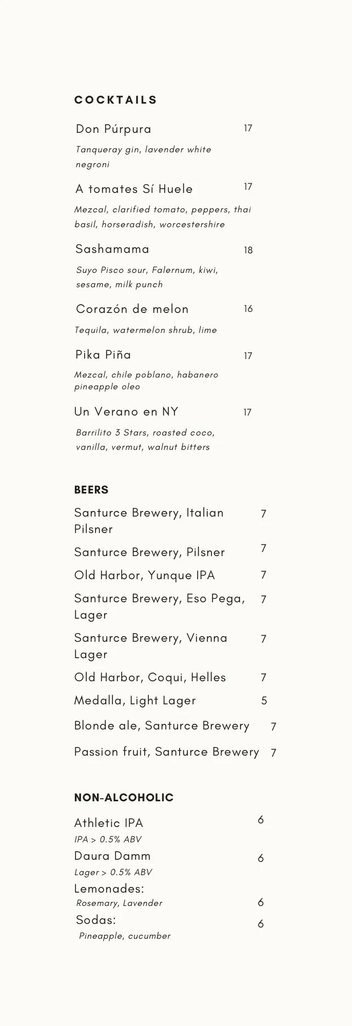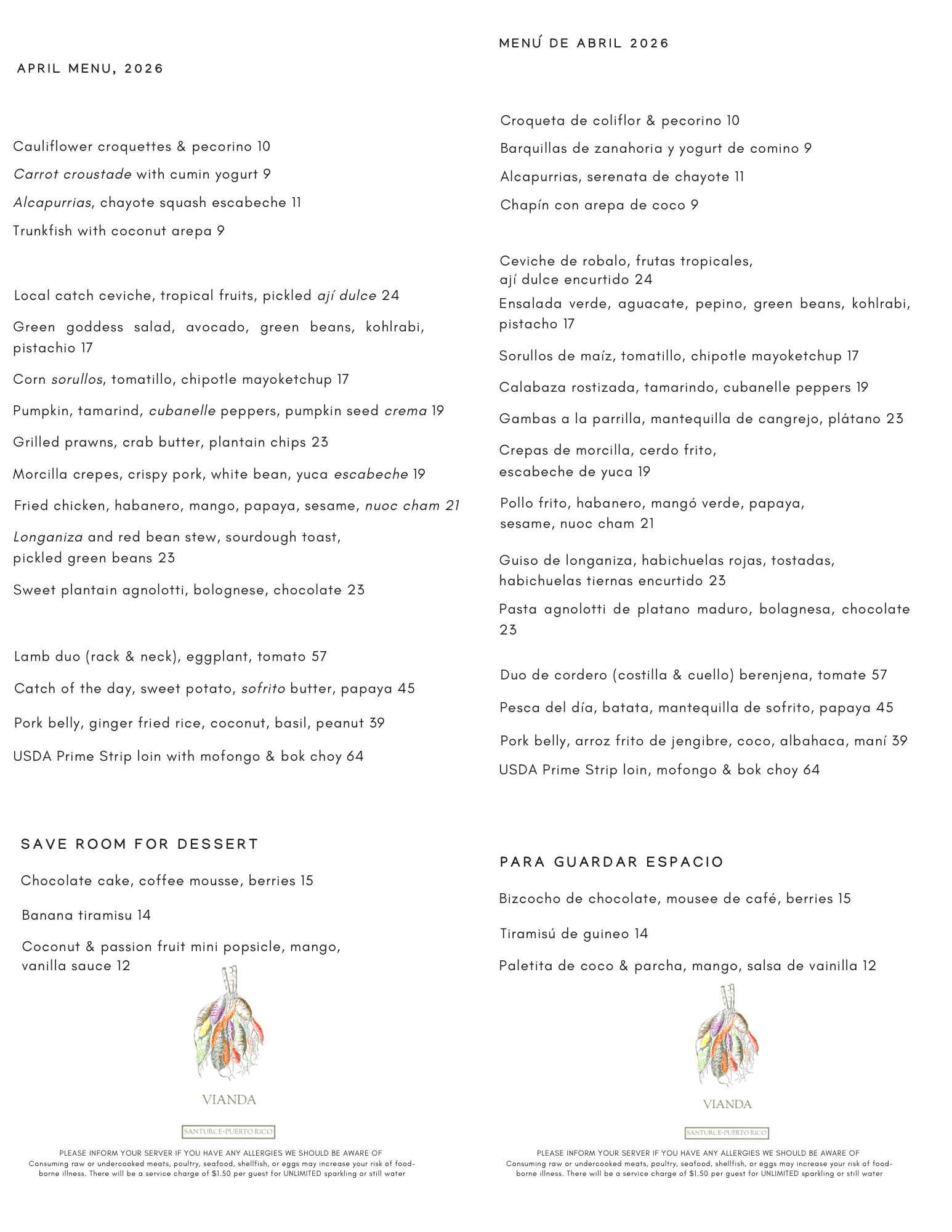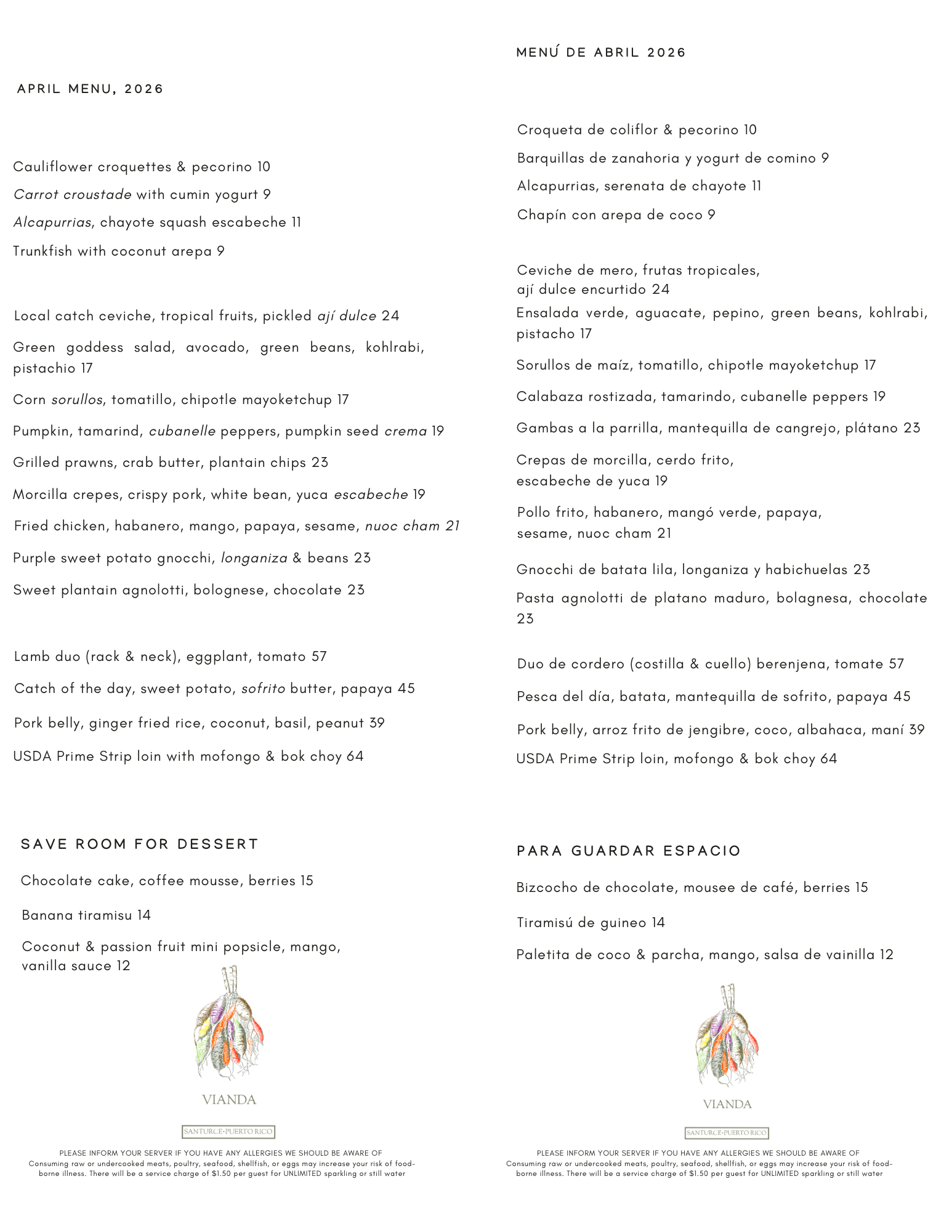 In 2017 they moved to San Juan, Chef Guzmán's hometown, to start building their first restaurant: Vianda. The Spanish language adopted the word "vianda" from the latin word “vivanda,” which means a place of living. Vianda serves a small, constantly evolving, farm-to-table menu anchored by local ingredients and products. This enables us to create, fresh, delicious food focusing on the best that Puerto Rico has to offer: its agriculture and its warm hospitality.
